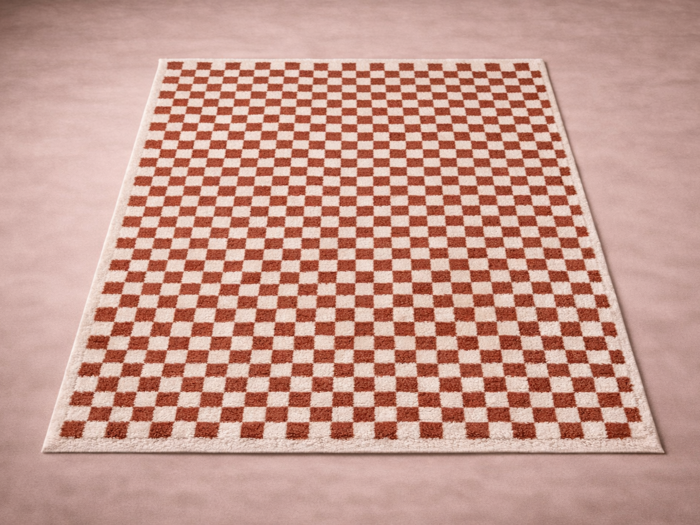 Rust Checkered Shaggy Rug