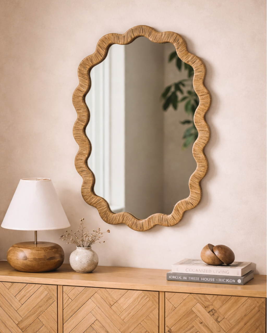 Wavy Rattan Wall Mirror